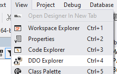 You could code Data Dictionary Objects manually in your components, similar to the code example I just showed. However, there is an easier way. And that is by using the DDO Explorer. The DDO Explorer displays an overview of the Data Dictionary Objects in the current file. This file could have an implementation of for example a web view, a dialog or a report, being the main component of that file. To open the DDO Explorer, press Ctrl and the 4 key. Or go to the Studio Menu, View, and click DDO Explorer.