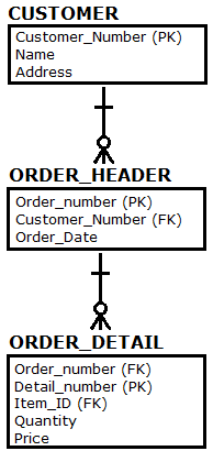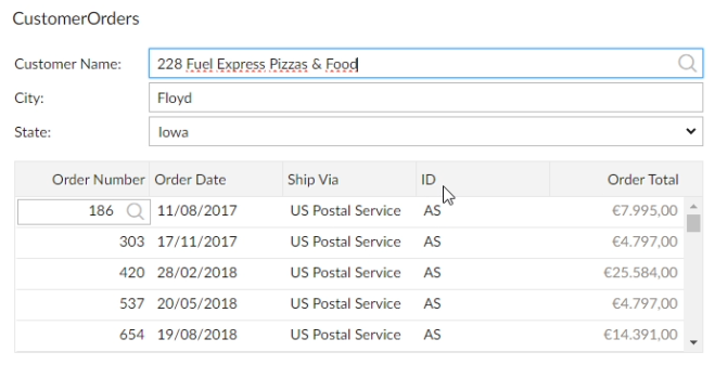 As you can see, OrderHeader is constrained by the Customer table, which means that it will only display Order Header records that belong to a particular Customer record. Let me switch to the code editor for a moment, so you can see the actual code: