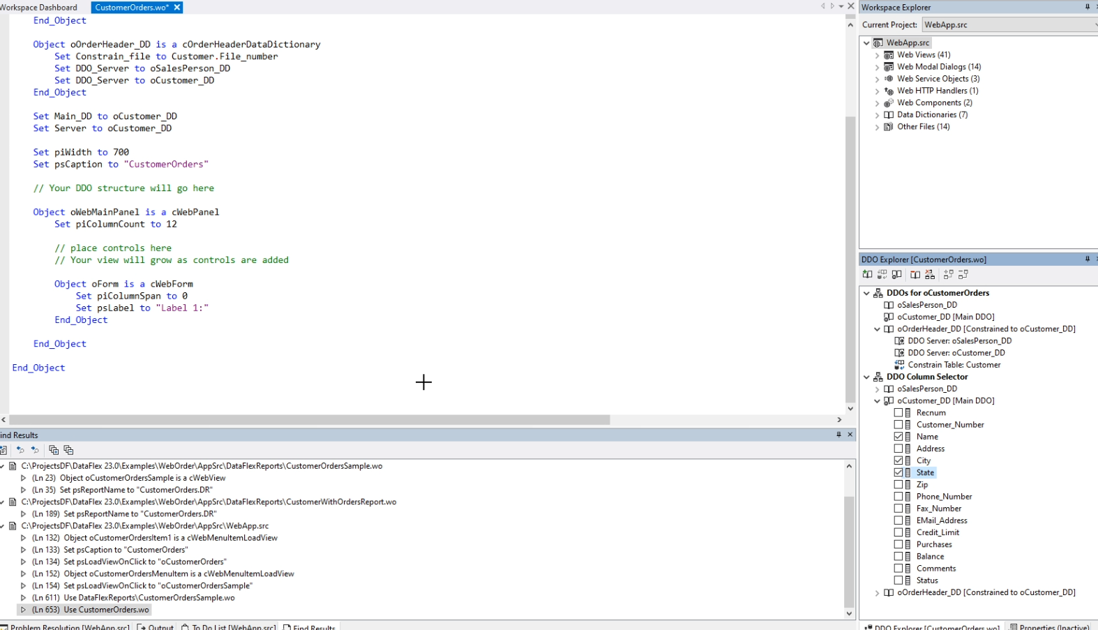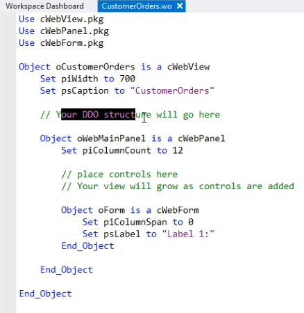 I name it oCustomerOrders. Now the generated code already has a comment saying: “Your DDO structure will go here”.