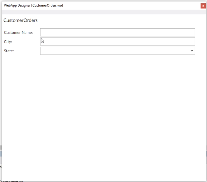 Now I can select fields from the DDO Explorer and drag them to the code editor. I select Name, City and State, and drag them here where it already says “Place your controls here”.