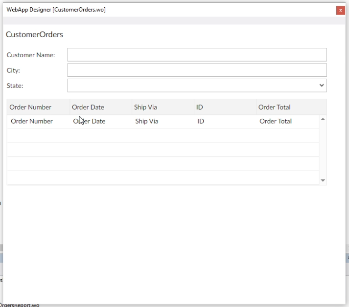 Now I simply select fields from the DDO Explorer, from OrderHeader, and drag them to the new webgrid. Here they are.