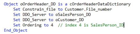 You can see the code it has generated. It has three Data Dictionary Objects, the Main_DD and Server are set to Customer_DD. In the OrderHeader DDO there is code that links it to the other two DDOs. DDO_Server makes the link to the parent. And Constrain_File has the result that the finding of records in the OrderHeader table is limited to records that belong to the current Customer.