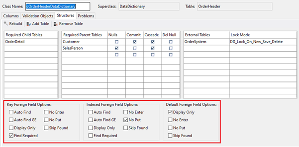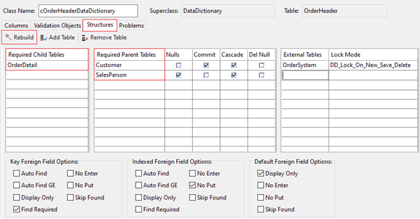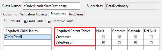 Conveniently, in most cases the Studio will do all of this work for you, based on the table relationships that you already have created. For example, if you create a Data Dictionary for a table that has relationships defined, the correct Required Child Tables and Required Parent Tables are automatically listed for you. Required here means: required in the DDO structure.
