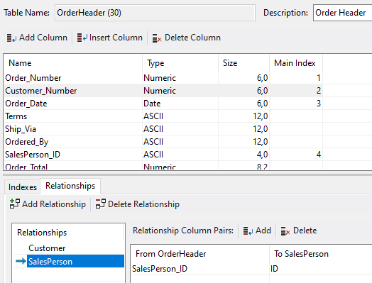 Customer_Number is a foreign column in the OrderHeader table, relating to the Customer table, which is indexed on the Customer_Number column. If I would drag Customer_Number onto the view, you would perhaps expect to get this code for it: