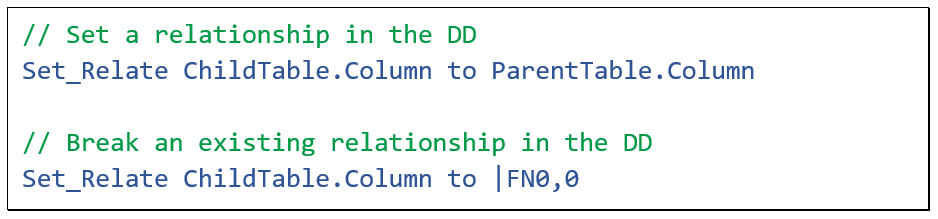 This global table relationship can be changed using a Set_Relate instruction in the Data Dictionary class.