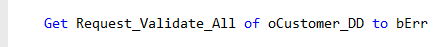 Let’s go back to the code example I just showed before. As you can see, it does a Request_Validate before doing the Request_Save. Although it is not strictly required to do so, it is highly recommended to always do a Request_Validate first. This sends validation messages to all DDO fields in all tables that will participate in the upcoming save, without locking any table. Request_Save will do a final validation, but at that point the table is locked.