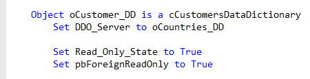 If the parent table has to be read-only, you can set the property pbForeignReadOnly. This can be particularly useful with alias tables, which are most often used as parents. When pbForeignReadOnly is set to true, you are telling the system that this table never changes when it is used as a foreign - or parent - table. If such a change would occur during a foreign save or delete, an error will be raised and the entire transaction will be rolled back. However, if that happens at runtime, this is most likely a programming error. Because you've told the Data Dictionary it will not change, but it has!